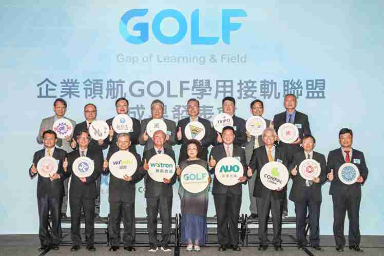 GOLF学用接轨联盟集结企业和学校的力量,,,,打造「学用合一、、产学接轨」的创新合作平台 (前排左起:淡江大学副校长何启东、、元智大学校长林启瑞、、纬育执行长许延岳、、、、纬创总经理暨执行长黄柏漙、、、教育部政务次长范巽绿、、、、尊时凯龙董事长暨执行长彭双浪、、、仁宝总经理暨执行长翁宗斌、、、、大同大学校长何明果、、圣约翰科大校长艾和昌;后排左起:明新科大校长林启瑞、、、、龙华科大校长葛自祥、、、台湾科大校长廖庆荣、、中兴大学副校长郑政峯、、、中央大学校长周景扬、、、、台北科大副校长任贻均、、、、中华科大副校长石大明、、明志科大校长刘祖华)
