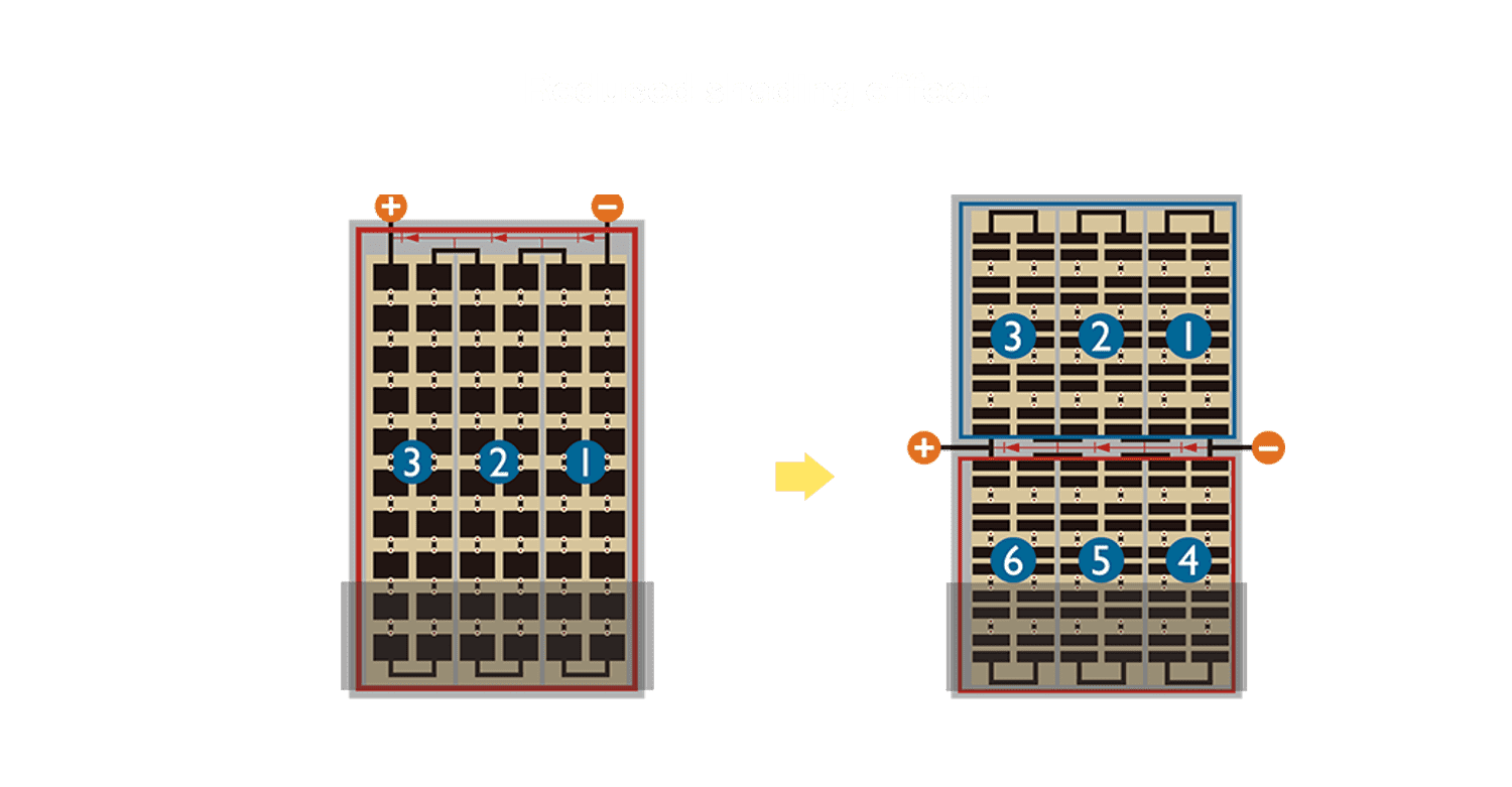 - 结合半切电池,,,降低遮阴影响、、、提升模组抗隐裂能力、、并减少电阻损耗,,,,进一步提升模组发电效能。。。。
